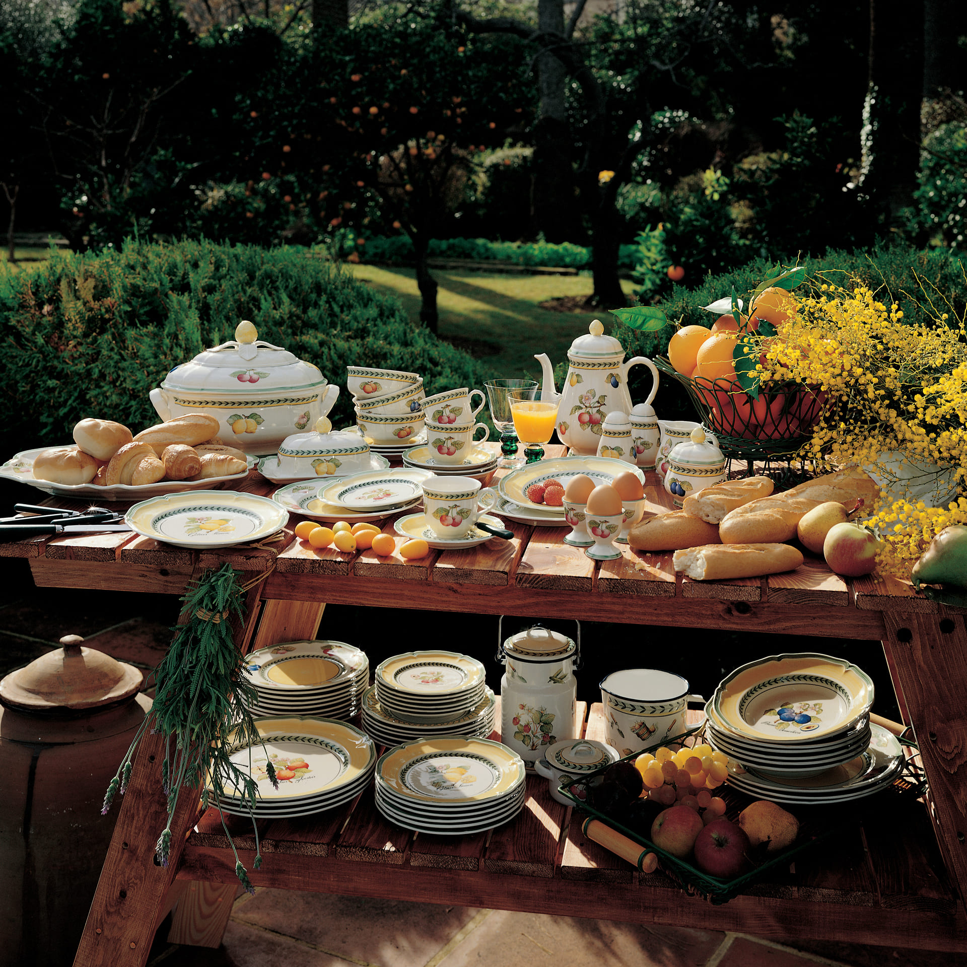 Dinner plate for many occasions. French Garden creates a magnificent orchard on the table with traditional country house elements in warm colours. Its timeless beauty allows the different summer decors to be mixed and matched with each other. This versatile dinner plate can also be used to serve fruit or pastries. Treat yourself and your guests.