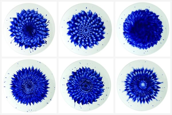 Set of 6 salad plates from In Bloom collection. The In Bloom collection by Zemer Peled is the result of an encounter between a talented young artist and exceptional craftsmanship. During her residency at the Manufacture Bernardaud, Zemer Peled spent time observing and understanding the complexity of creating a porcelain piece. It is with great enthusiasm that she became interested in the know how of decoration, alongside an expert who has been working at Bernardaud for more than 30 years. She learned to perform a quick, precise gesture and to perfectly control the pressure of her brush to achieve the desired effect: a decor where you feel the gesture and texture.