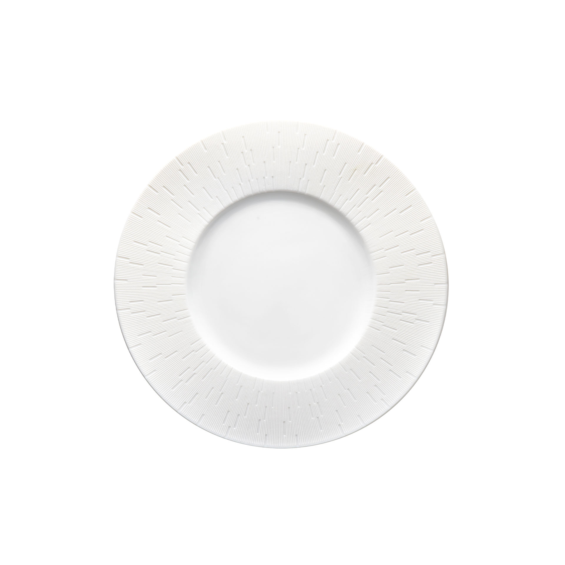 Infini Blanc Bread and butter plate. Limoges porcelain from Haviland stands for perfect craftsmanship, and you will find it impossible to resist running your fingers over this gorgeous Infini dinnerware line. All of the Infini plates by Haviland have a radial relief pattern, which is engraved into the Limoges porcelain. Each plate from Haviland is a Unique piece, exclusively shaped and worked by hand.