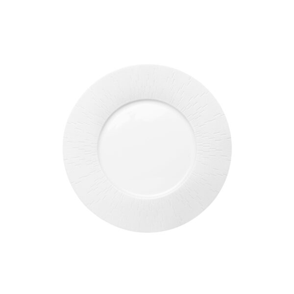 Infini Blanc Dessert plate. Limoges porcelain from Haviland stands for perfect craftsmanship, and you will find it impossible to resist running your fingers over this gorgeous Infini dinnerware line. All of the Infini plates by Haviland have a radial relief pattern, which is engraved into the Limoges porcelain. Each plate from Haviland is a Unique piece, exclusively shaped and worked by hand.