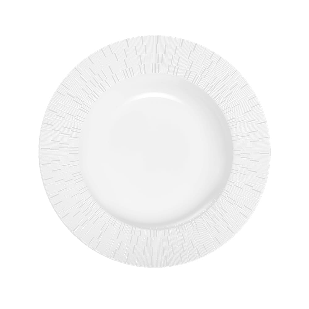 Infini Blanc Rim soup plate. Limoges porcelain from Haviland stands for perfect craftsmanship, and you will find it impossible to resist running your fingers over this gorgeous Infini dinnerware line. All of the Infini plates by Haviland have a radial relief pattern, which is engraved into the Limoges porcelain. Each plate from Haviland is a Unique piece, exclusively shaped and worked by hand.