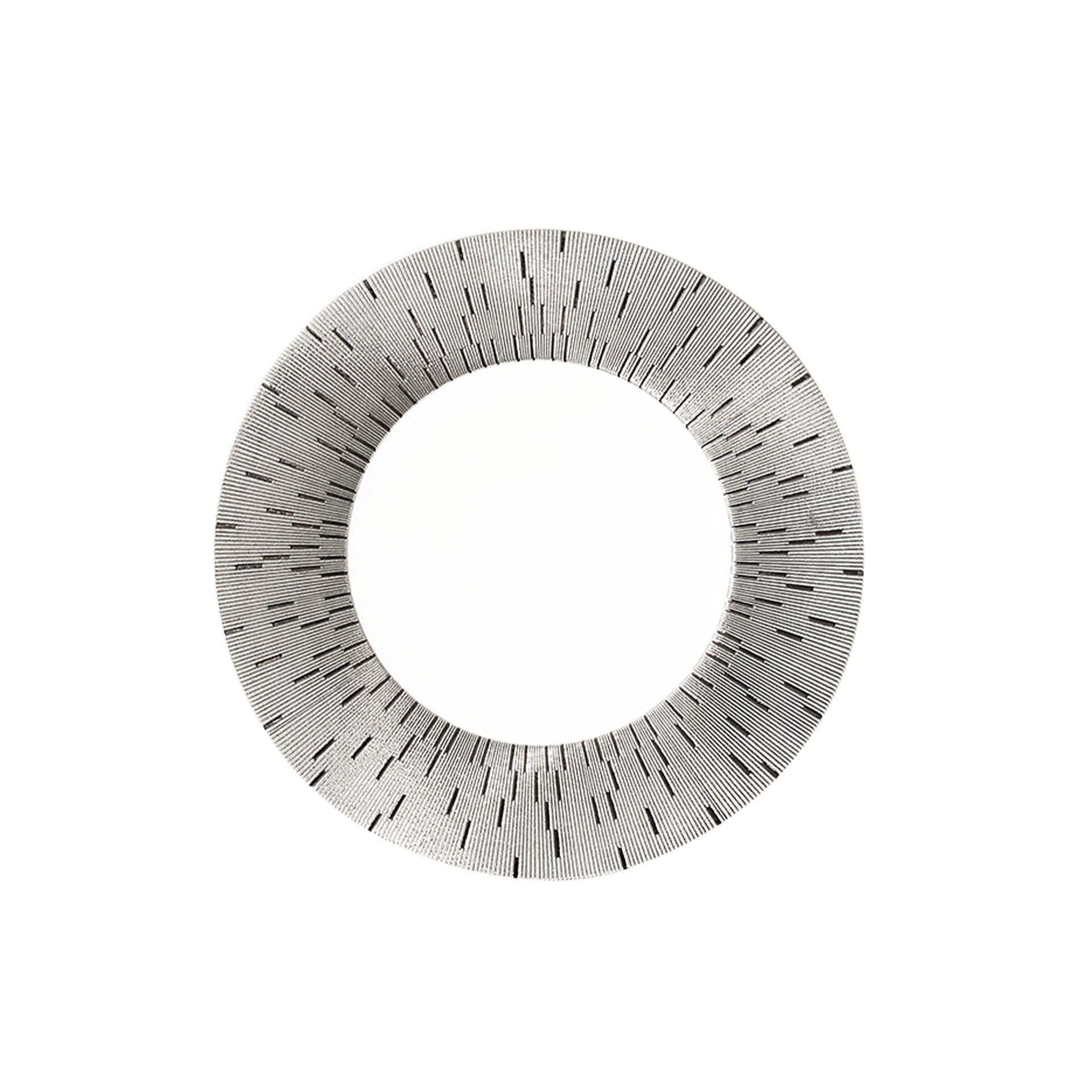 Infini Prestige Platine Dessert Plate. Limoges porcelain from Haviland stands for perfect craftsmanship, and you will find it impossible to resist running your fingers over this gorgeous Infini dinnerware line. All of the Infini plates by Haviland have a radial relief pattern, which is engraved into the Limoges porcelain. Each plate from Haviland is a Unique piece, exclusively shaped and worked by hand.