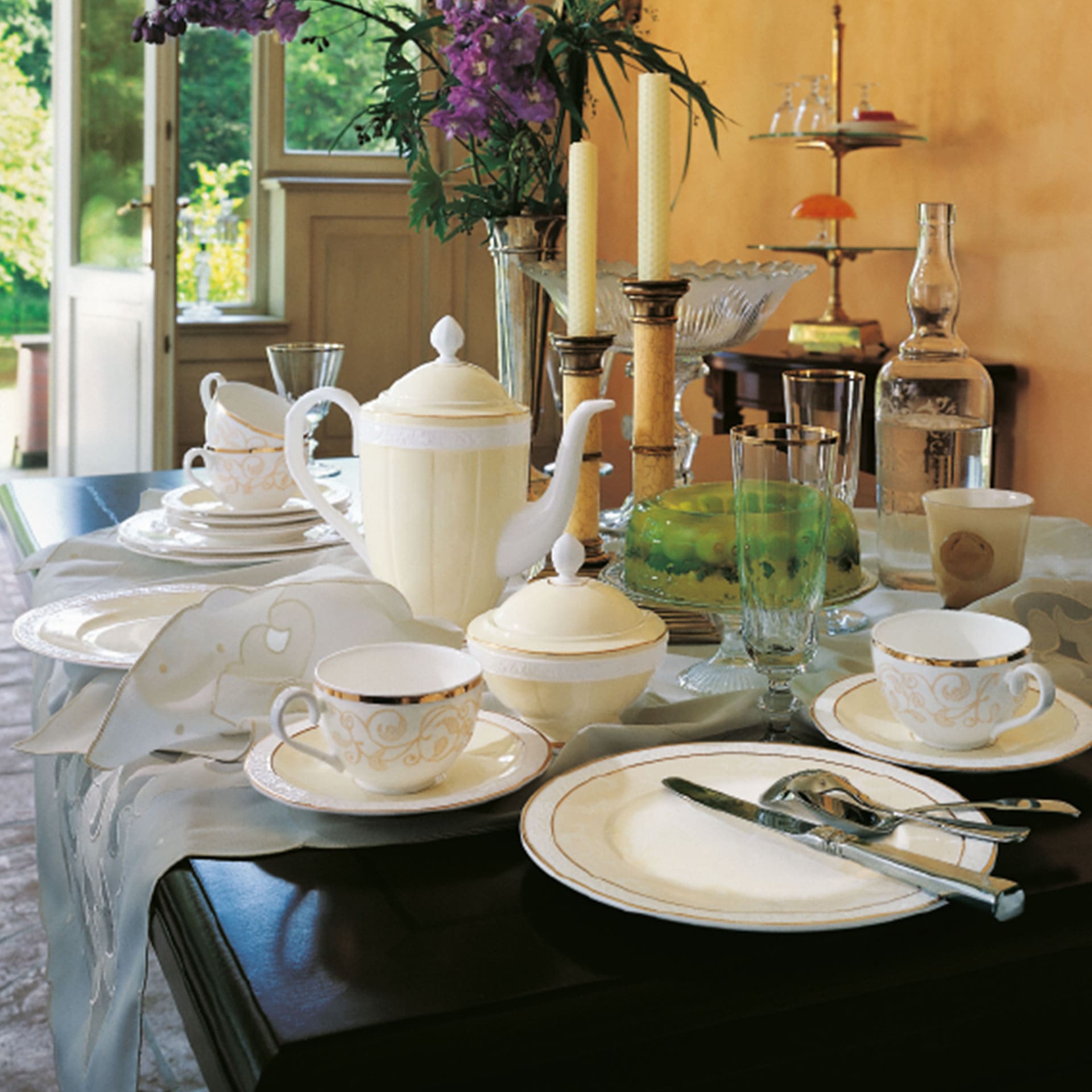 This saucer Coffee / tea cup forms part of Villeroy Boch’s elegant and luxurious dinnerware collection Ivoire. Ivoire is a fine and noble porcelain made of high-quality bone china that amazes by its successful combination of white and cream as well as its by its nice pattern. Every item of this range has been adorned by a golden coat making it look even more luxurious. The collection perfectly fits into a classic atmosphere as well as into the classic modern style and can be ideally completed with the matching cutlery, porcelain or Tablecloths by Villeroy Boch.
