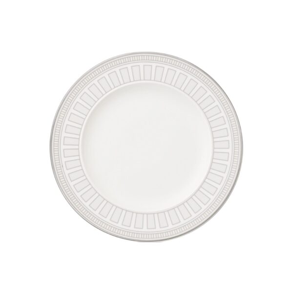 This salad plate forms part of la Classica Contura, the decorated option of the pure white collection la Classica Nuova. Inspired by domes and rotundas the Home decor underlines the clear design language of the tableware with fine lines and graphic patterns. It can be used alone but can also be wonderfully combined with the white version. To complete the table-settings a selection of matching accessories has been developed: glass candle stands in two different sizes with matching candles, and coordinating knife rests and napkin rings, also of glass.