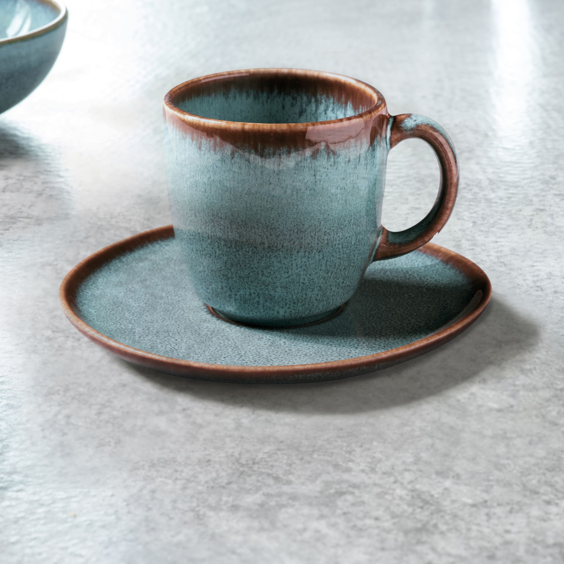 Highlight in the trendy pottery style. The Lave stoneware collection impresses with intense colours and Scandinavian design. The special glaze creates a variety of different hues, making each piece a unique work of art for the stylish presentation of all kinds of culinary delights. The saucer has plenty of space next to the cup for a sweet treat with coffee. Celebrate your individual style with exceptional crockery design.