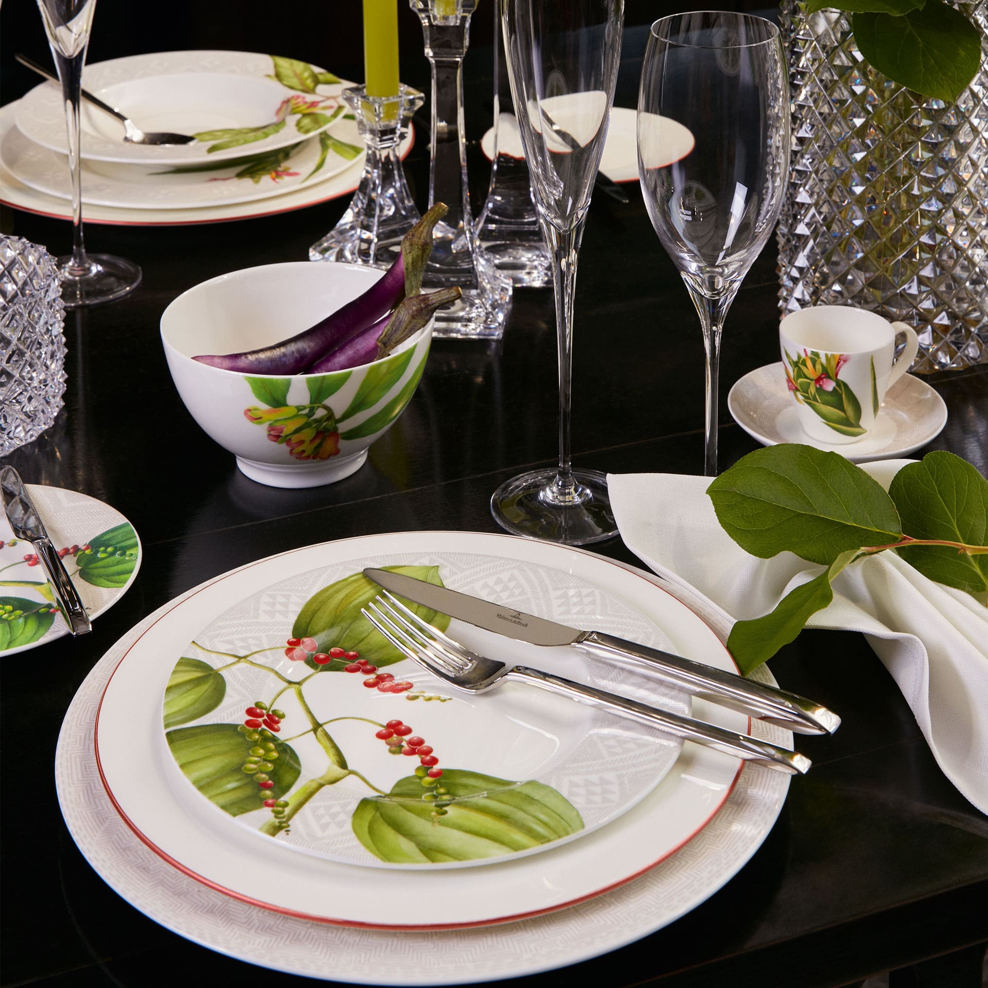 Inspired by Vasco da Gama’s travels along the coast of Africa to India, ginger flowers, cloves and pepper berries adorn the stylish decor of the Malindi collection. The espresso cup from the Malindi range looks very appealing thanks to the saucer with its elegant decor. Enjoy the perfect espresso the Italian way.
