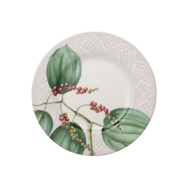 Small plate for breakfast. Inspired by Vasco da Gama’s travels along the coast of Africa to India, ginger flowers, cloves and pepper berries adorn the stylish decor of the Malindi collection. The elegant salad plate is perfect for breakfast, lunch or afternoon cake. Start the day in style.