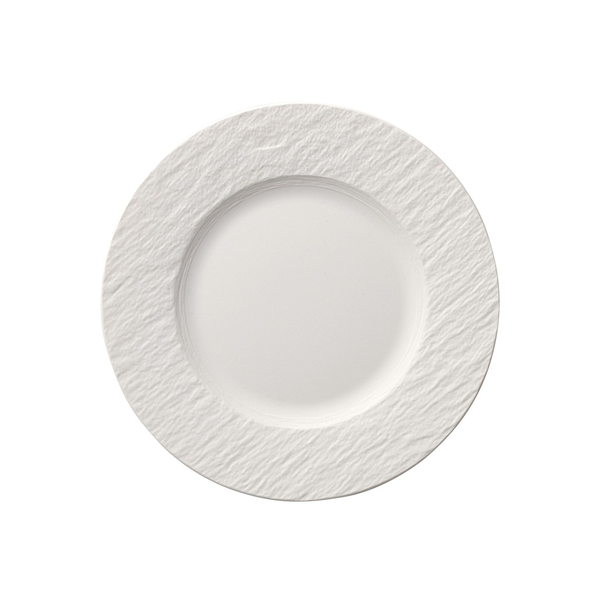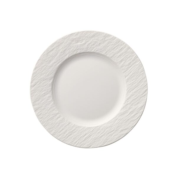 Impress your guests with sophisticated tableware design. Natural, original and with a special feel: this is Manufacture Rock. The artisanal style in the form of matte slate-looking porcelain makes the collection truly unique. Combine it with the hand-painted pieces in the Manufacture sister collection to bring warmth to your table. This versatile white flat plate from Manufacture Rock can also be used to serve fruit or pastries.