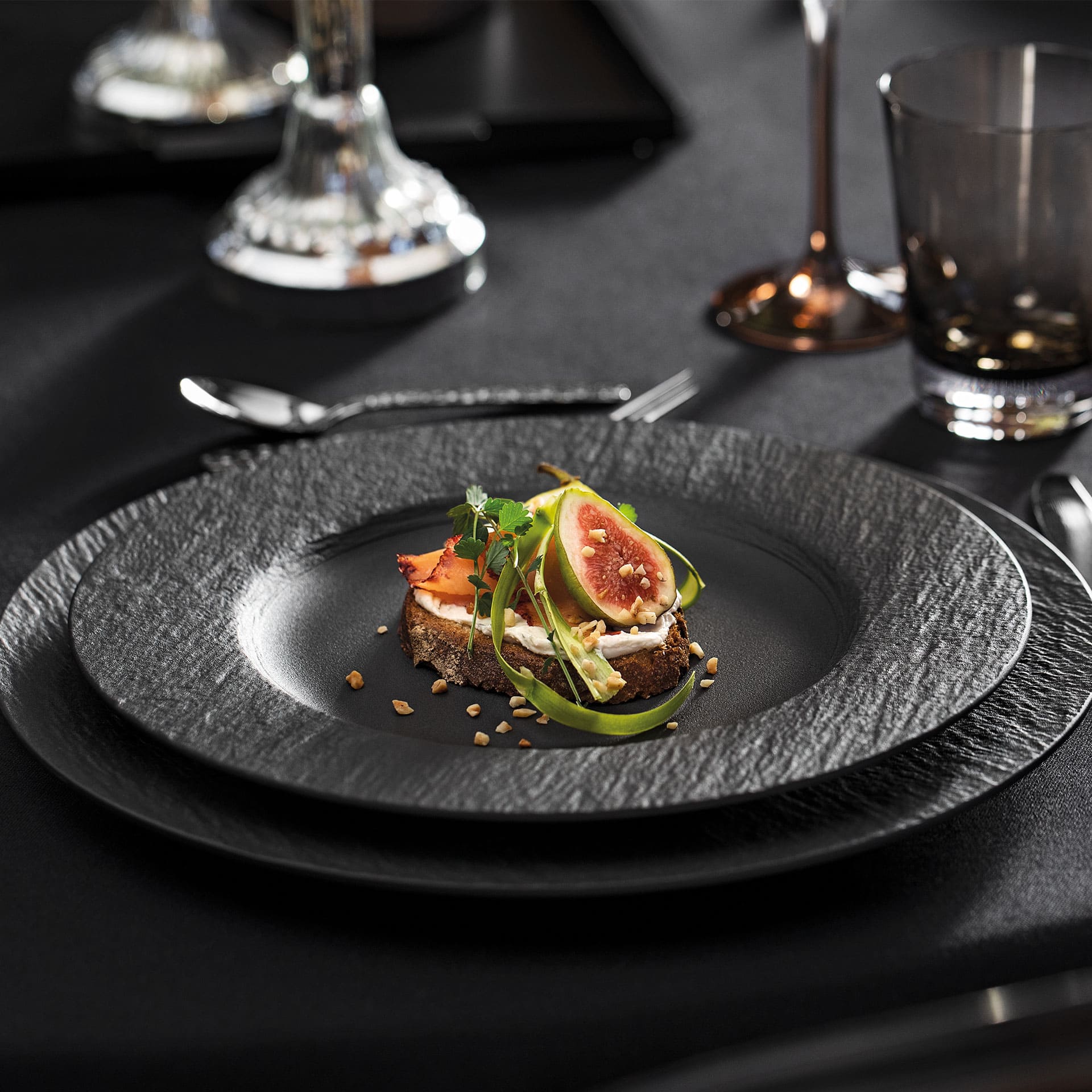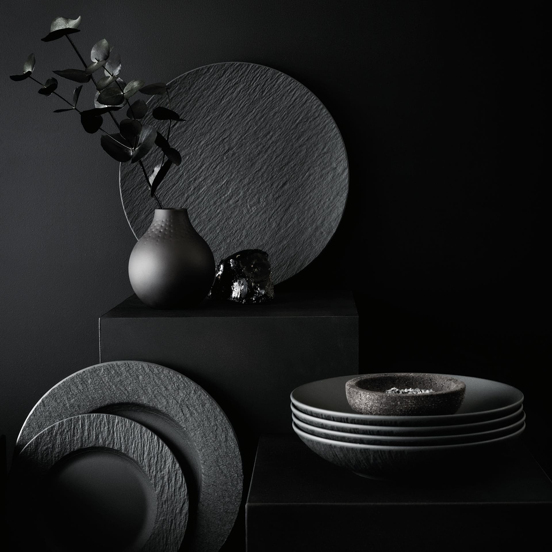 Impress your guests with sophisticated tableware design. Natural, original and with a special feel: this is Manufacture Rock. The artisanal style in the form of matte slate-looking porcelain makes the collection truly unique. Combine it with the hand-painted pieces in the Manufacture sister collection to bring warmth to your table. Warm croissants or fresh fruit: morning treats taste even better when served on this black salad plate from Manufacture Rock.