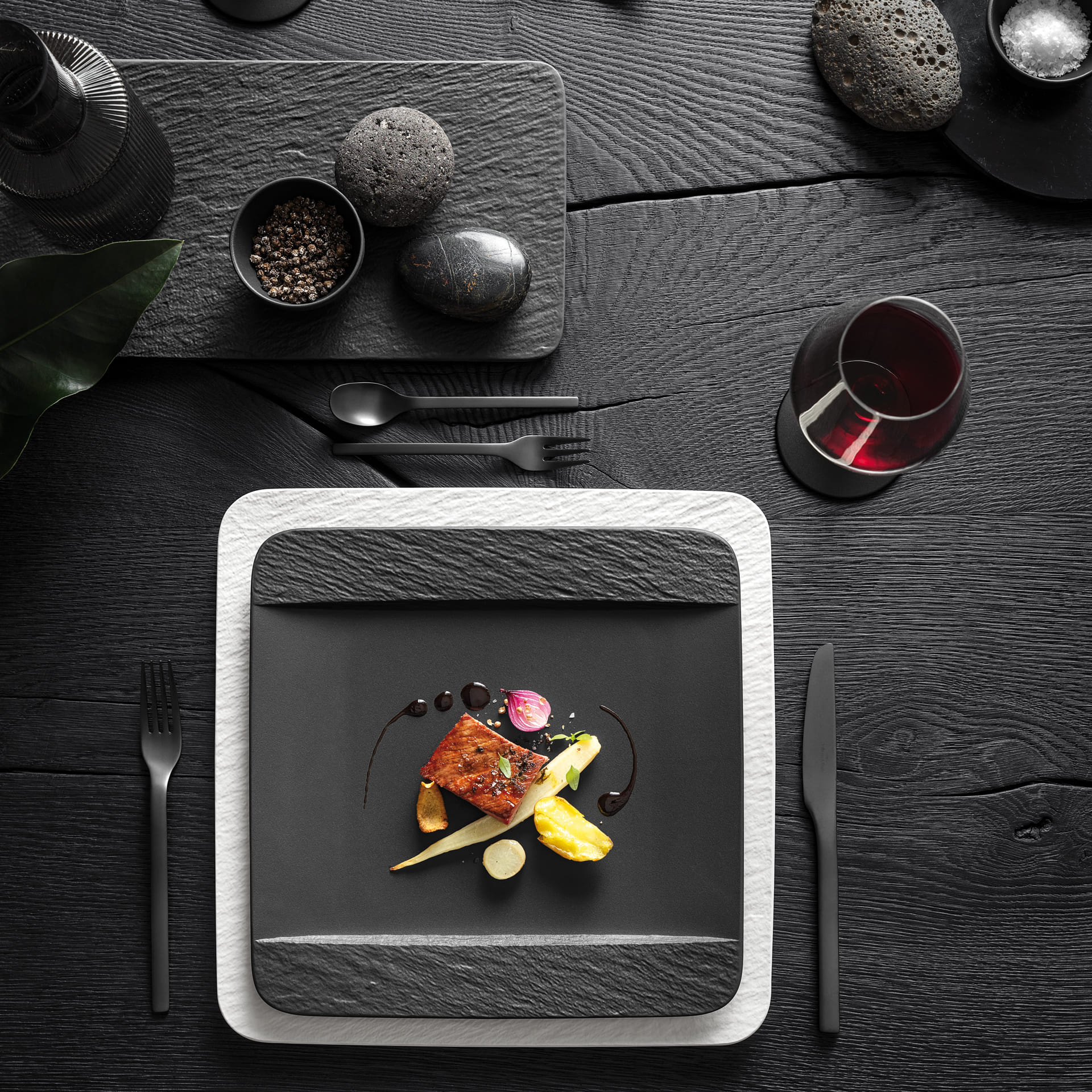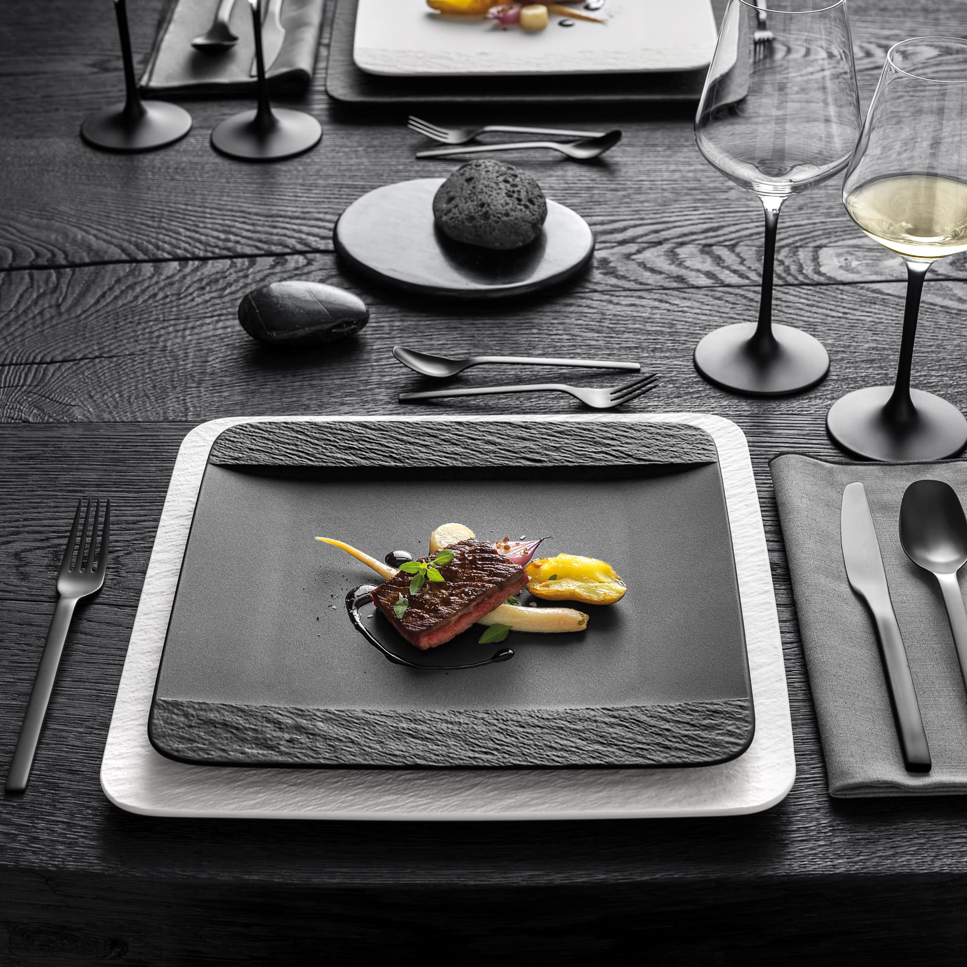 Slate look with an extraordinary shape. Manufacture Rock is something very special: an innovative use of materials, matt-structured porcelain surfaces and the expressive black give the iconic on-trend range its unique slate look and exceptional feel. Can be combined with the entire Manufacture range for an exciting look. Why do plates always have to be round? Manufacture Rock breaks the mould in many ways – this unusual plate is just one example of how you can enhance any meal with extraordinary design. Treat yourself to distinctive design.