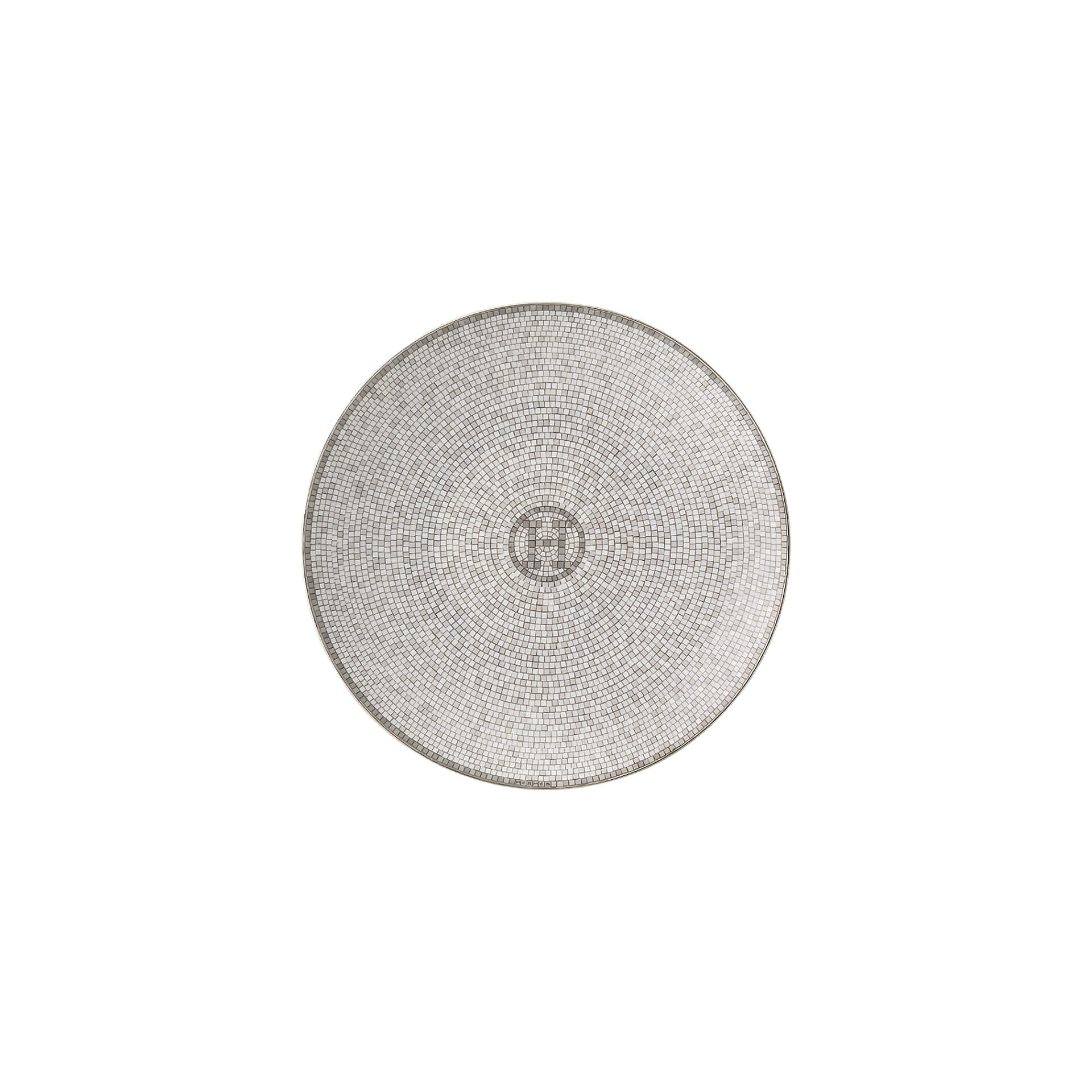 Bread and butter plate from Mosaïque au 24 Platine. This monochromatic interpretation of the Mosaïque au 24 pattern features shades of grey embellished with platinum.