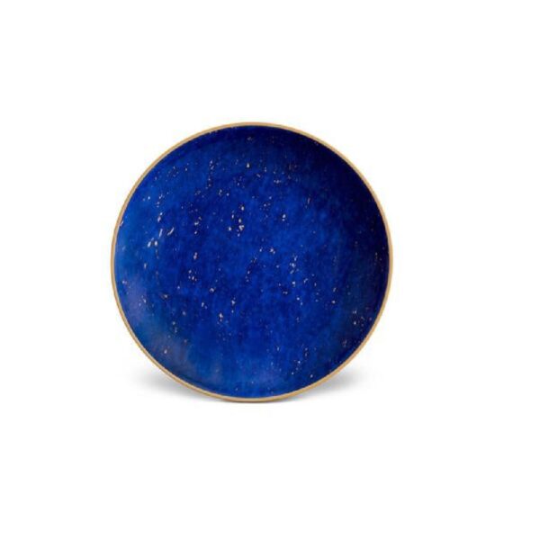 Lapis celebrates the mesmerizing skies above the Mediterranean, an azure of incredible depth in variation and tone. Small dish made of porcelain with hand-gilded 24K gold accents, ideal for dining or as a decorative accent for desktop or vanity.