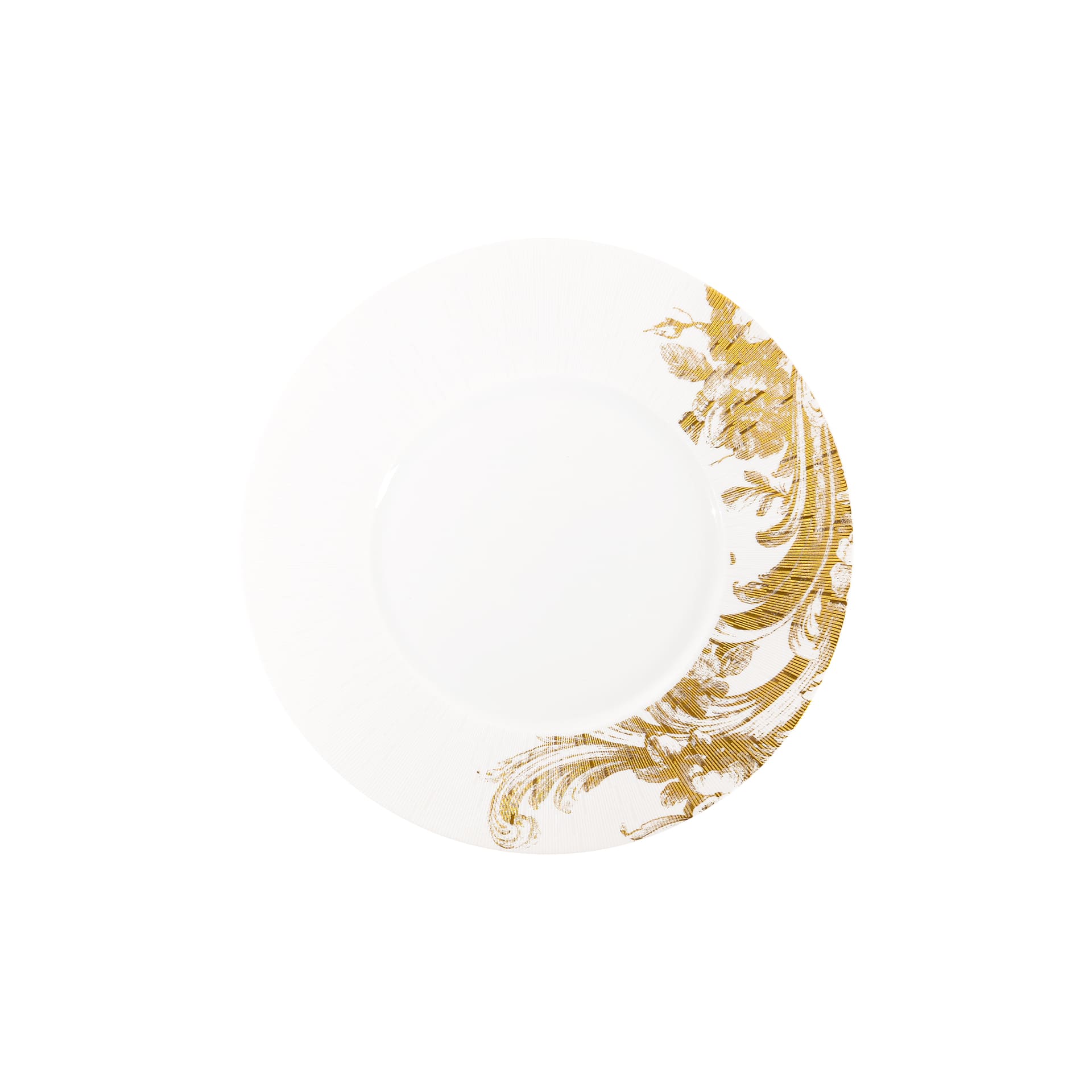 Stanislas Or Large dinner plate. The Haviland Manufacturer proudly reveals its latest collection, Stanislas, a dinner service with a harmonious combination of acanthus leaves and peonies.Haviland has chosen to revisit this essential motif of French architectural heritage with an elegant and refined tableware collection.
