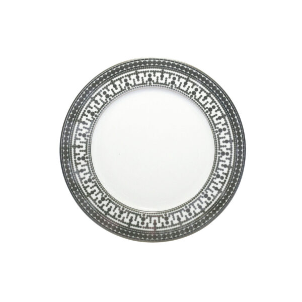 Tiara Blanc Platine Large dinner plate. Haviland, a leading porcelain manufacturer, presents an exceptional design on Limoges porcelain with Tiara. The Tiara dinnerware displays a wonderful pattern, reminiscent of a diamond-studded coronet. A tiara, a jewelled ornamental band worn by women on formal social occasions, is often adorned with precious stones and diamonds. Each piece of the Tiara dinner service is manufactured in the renowned French porcelain factory Haviland.