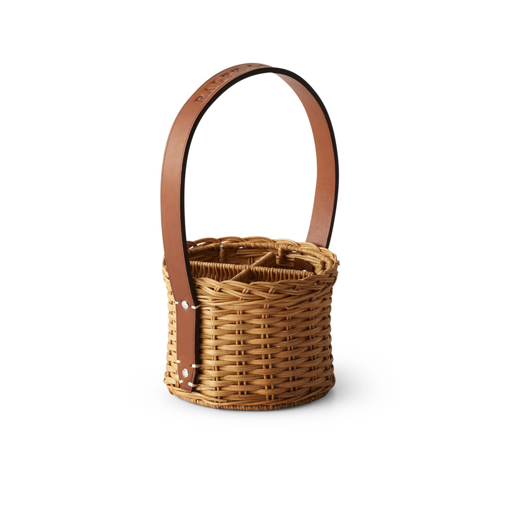 Inspired by the casual sophistication of Ralph Laurens restaurant in Paris the Bailey flatware caddy combines malleable hand-stitched leather trim with rustic ticking stripes and handwoven wicker.