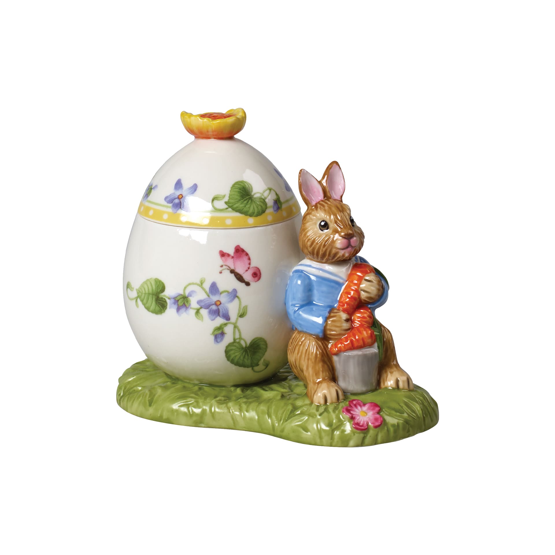 Would you like to decorate your home at Easter with a nostalgic feel or give your loved ones a gift from the heart? Its easy with our Bunny Tales collection. Moreover, the beautiful porcelain figurines and ornaments capture many motifs from the Spring Fantasy collection, making them perfect for mixing and matching with each other. The cute Easter bunny Max is nibbling on his carrot while leaning on the large Easter egg. Its lid can be removed, turning the egg into a small secret hideaway for Easter treasures. Ideal as decoration, a collectors item or loving gift. Spread Easter joy in your home.