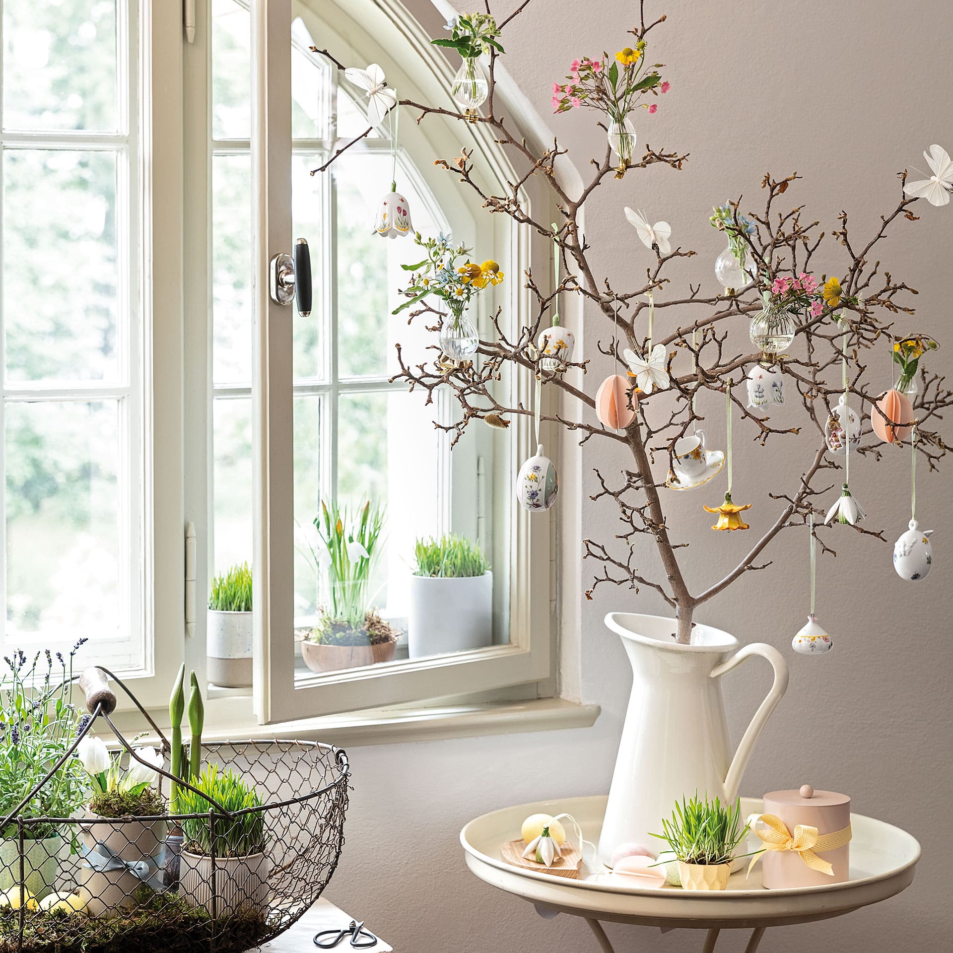 Let the Bunny Tales figurines tell the story of Bunny Grandpa Hans who teaches his grandchildren Anna, Max and baby Paul how to paint eggs. The hand-painted ornament with Bunny Max in the basket looks very pretty on an Easter shrub or as a gift tag. Experience the magic of Easter.
