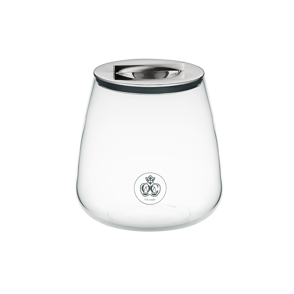 Small jar in silver plate and borosilicate glass. The transparency of the glass allows you to see the contents stored inside. The Silver Time jar is available in 3 sizes: small, medium and large.