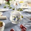 This covered sugar pot forms part of Villeroy Bochs Cottage collection which brings idyllic country life into every kitchen or dining room. The appeal of the Cottage decor is in the unique details. Scalloped edges, a relief trim and hand painted accents make this premium porcelain tableware a treasure to own, one that you will appreciate every morning. It is both microwave and dishwasher safe.