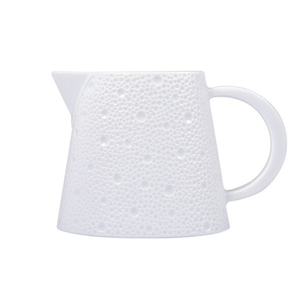 Creamer from Écume White collection. Subtle effects within the material, masterful glazing work, the hollow engraving of Écume makes for a contemporary and poetic collection that produces a highly elegant and modern table setting.