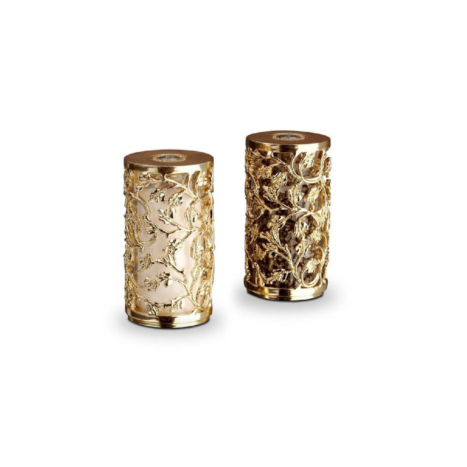 Masterfully crafted by hand with 24K gold plating, Lorel salt and pepper shakers pair beautifully with complementary napkin jewels for magnificent table settings. Each set of 2 is presented in a luxury gift box.