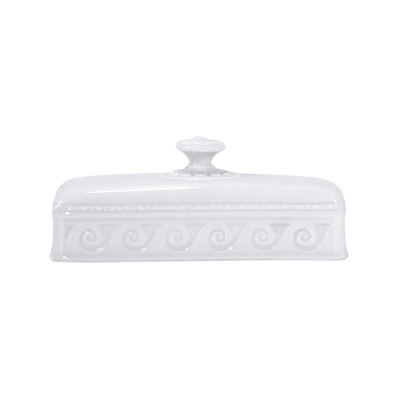 Rectangular covered butter from Louvre collection. The motifs engraved on the pieces that make up this white service create a stylish catalogue detailing the various periods of French architecture from the Renaissance through to the Second Empire which characterize this palace.