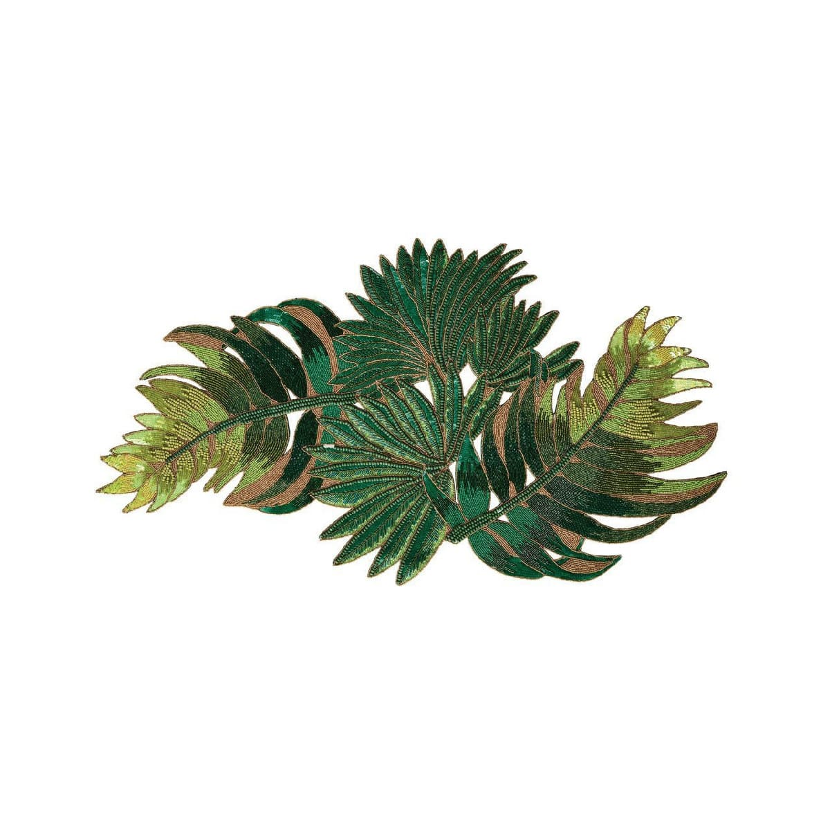 Kim Seyberts Verdant beaded table runner is Paradise found. Flourishing tropical vegetation is realized using an assortment of 12 types of decorative beads and sequins that takes each artisan almost five days to complete.