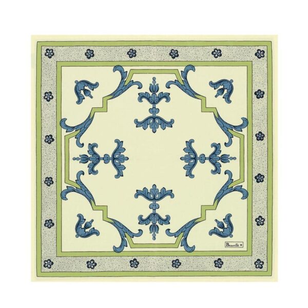The Trianon tablecloth unveils a beautiful architectural composition, enhanced with absinthian arabesques and indigo acanthus leaves that unfold on a sober and discreet color background. This luxurious tablecloth dresses your table with delicacy.