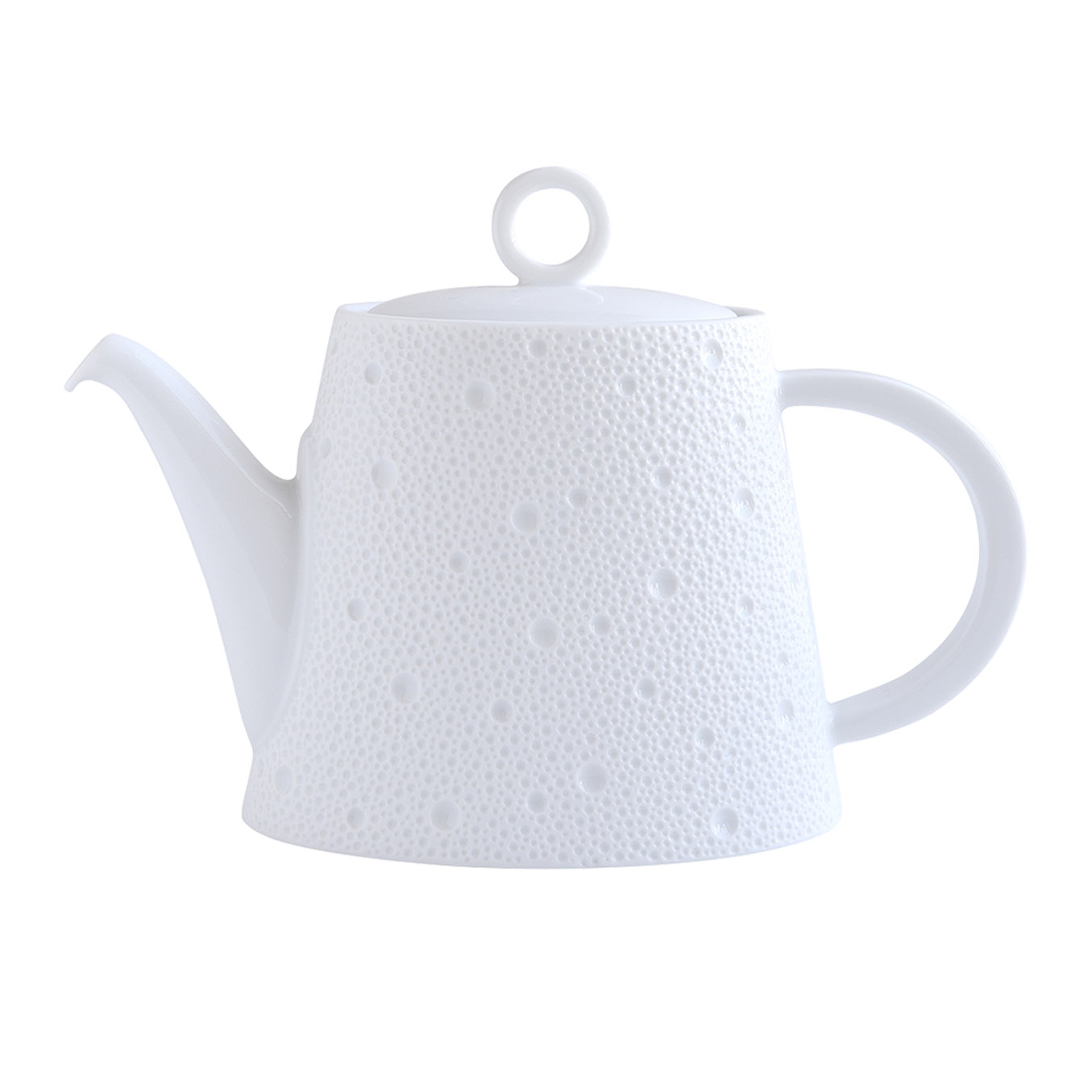 Hot beverage server from Écume White collection. Subtle effects within the material, masterful glazing work, the hollow engraving of Écume makes for a contemporary and poetic collection that produces a highly elegant and modern table setting.