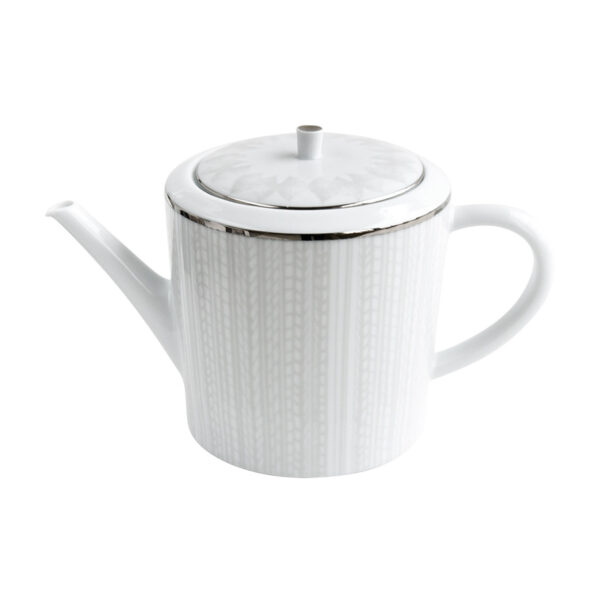Hot beverage server from Silva collection. The name of this new pattern comes from the Latinum “silva”, a poetical evocation of trees, masters of the forest. It also invites us to look closer and admire the beauty of Nature: delicate leaf veins and lace-like plant fibers ornate the rim of plates, alternatively in white on white or platinum relief.