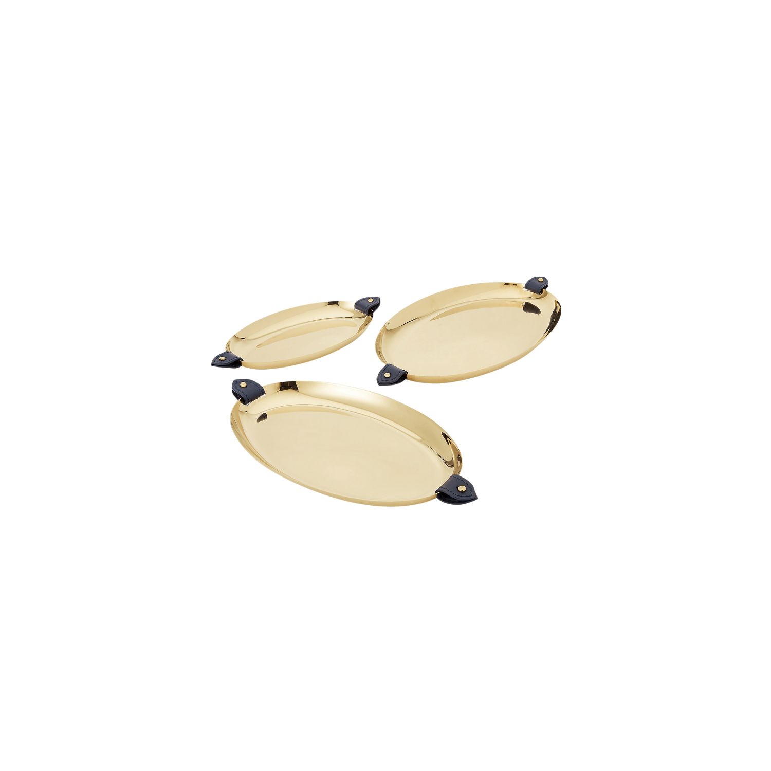 Ralph Laurens best-selling Wyatt collection is expertly crafted from polished stainless steel with supple leather accents. Presented in a set of three the streamlined silhouette and lustrous shine enhance the refined style of these elegant trays.