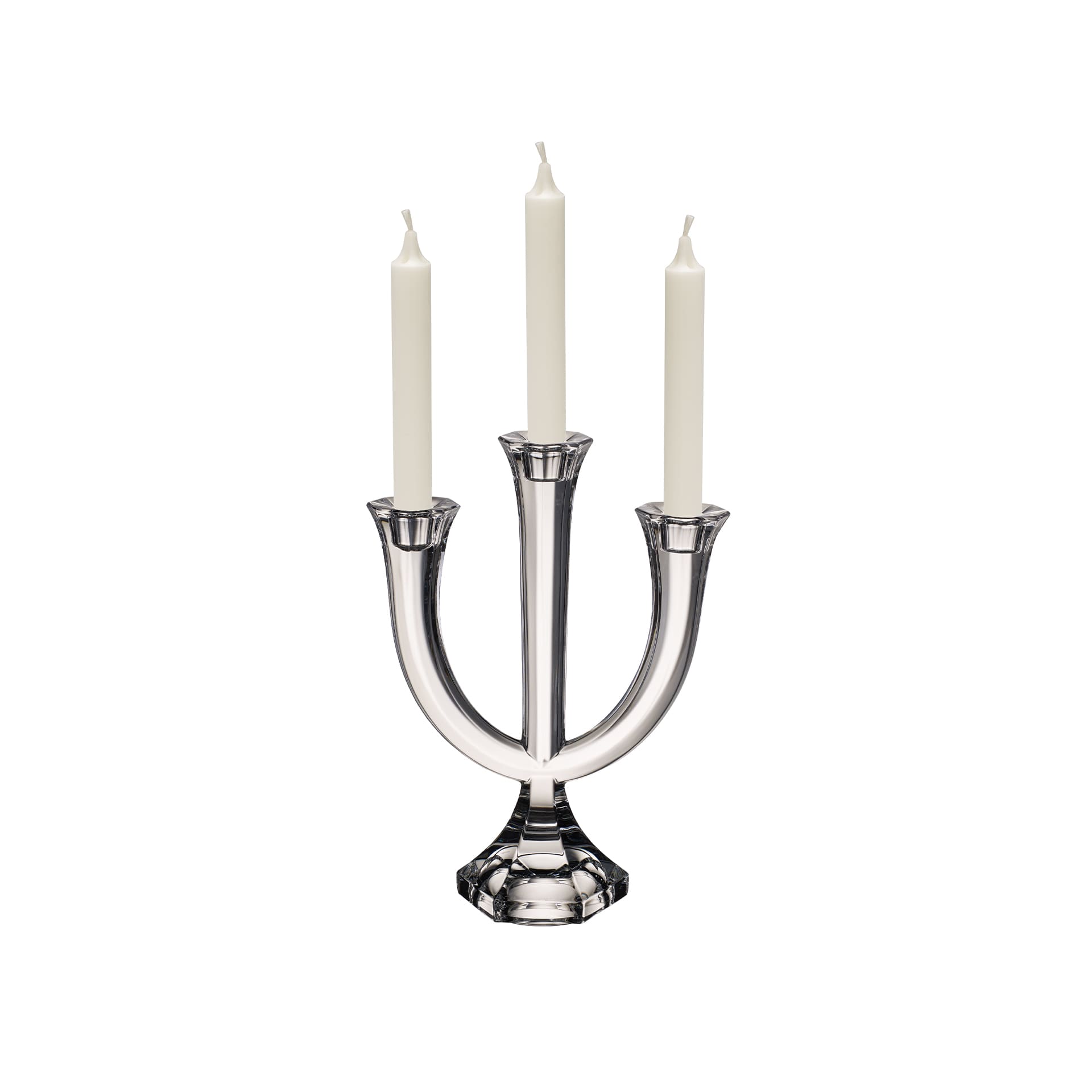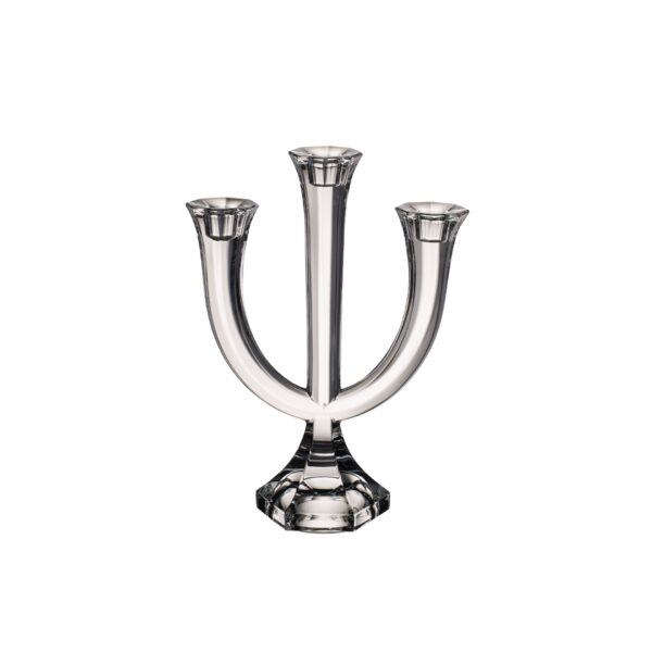 A candle holder that is a particularly stylish and elegant decorative element and gives every table and every living room an exclusive touch. This 3-armed glass chandelier offers space for 3 slender candles and is a real eye-catcher with its elegantly curved design. The high-quality crystal glass is easy to remove wax residue.