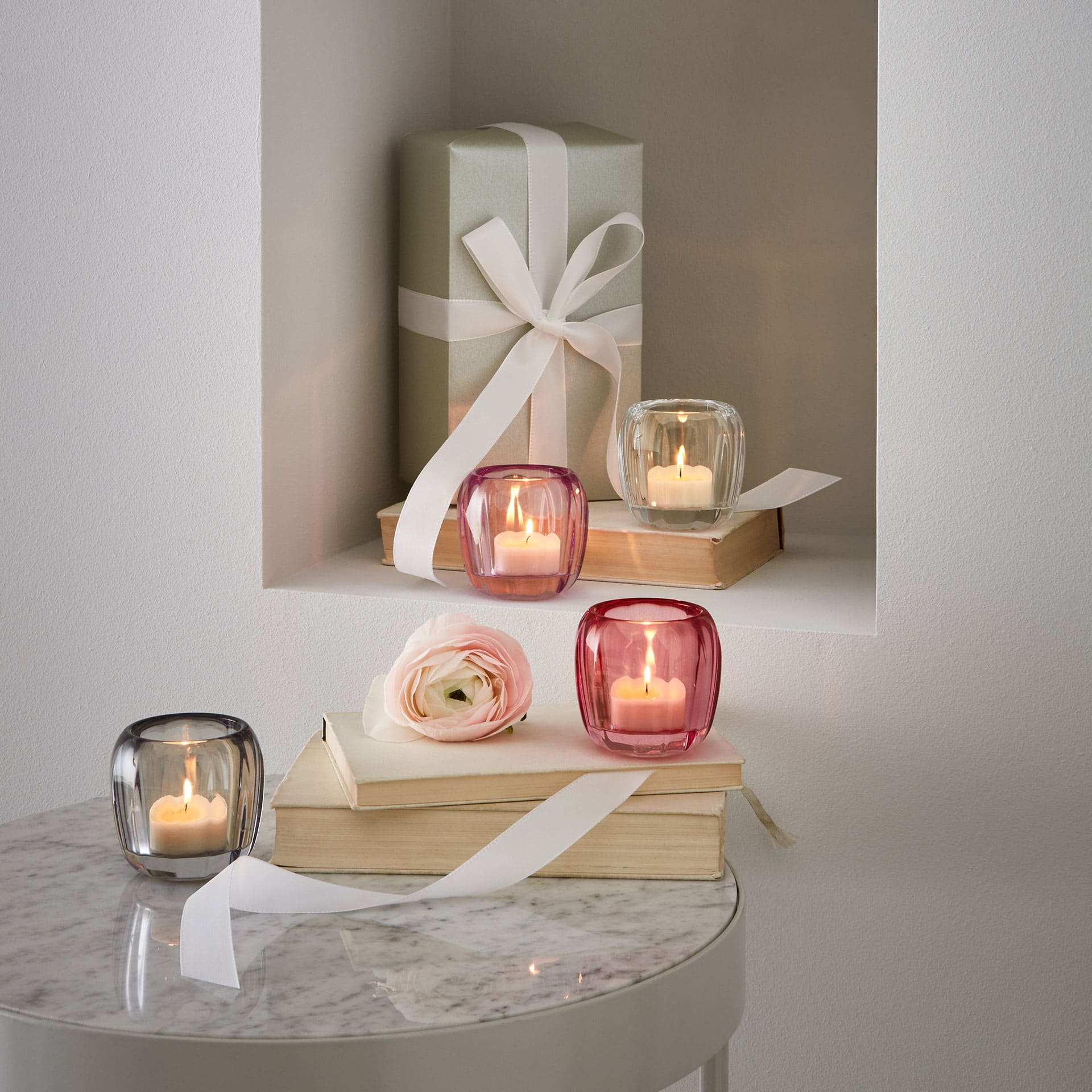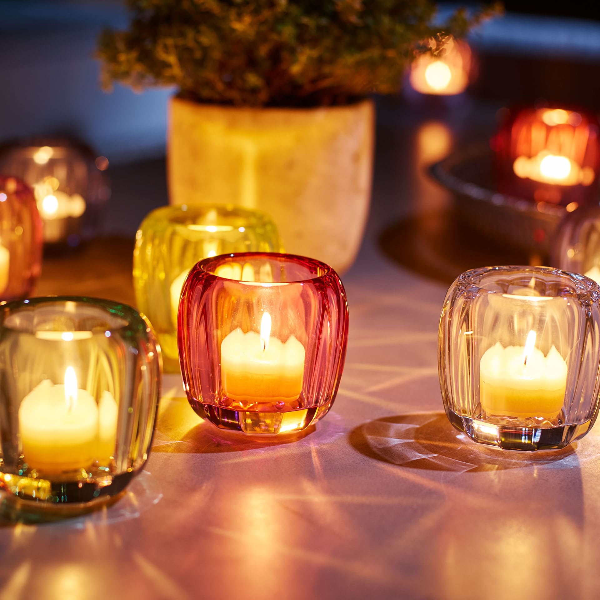 The crystal glass tea light holders in the Coloured DeLight collection in modern on-trend colours will cast a beautiful light on your furnishing. The pale pink tea light holder will cast a beautiful light in your home. It looks especially pretty when combined with other colours as well as lanterns and vases in the Coloured DeLight collection. Make it nice and cosy with home accessories from Villeroy Boch.