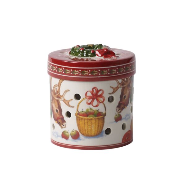 Designed to evoke a sense of nostalgia, Villeroy Bochs Christmas Toys collection lends vintage charm to your festive Home decor. Brightening up any fireplace with a tealight, this porcelain box is hand-painted with an outdoor scene with reindeer collecting apples in the snow.