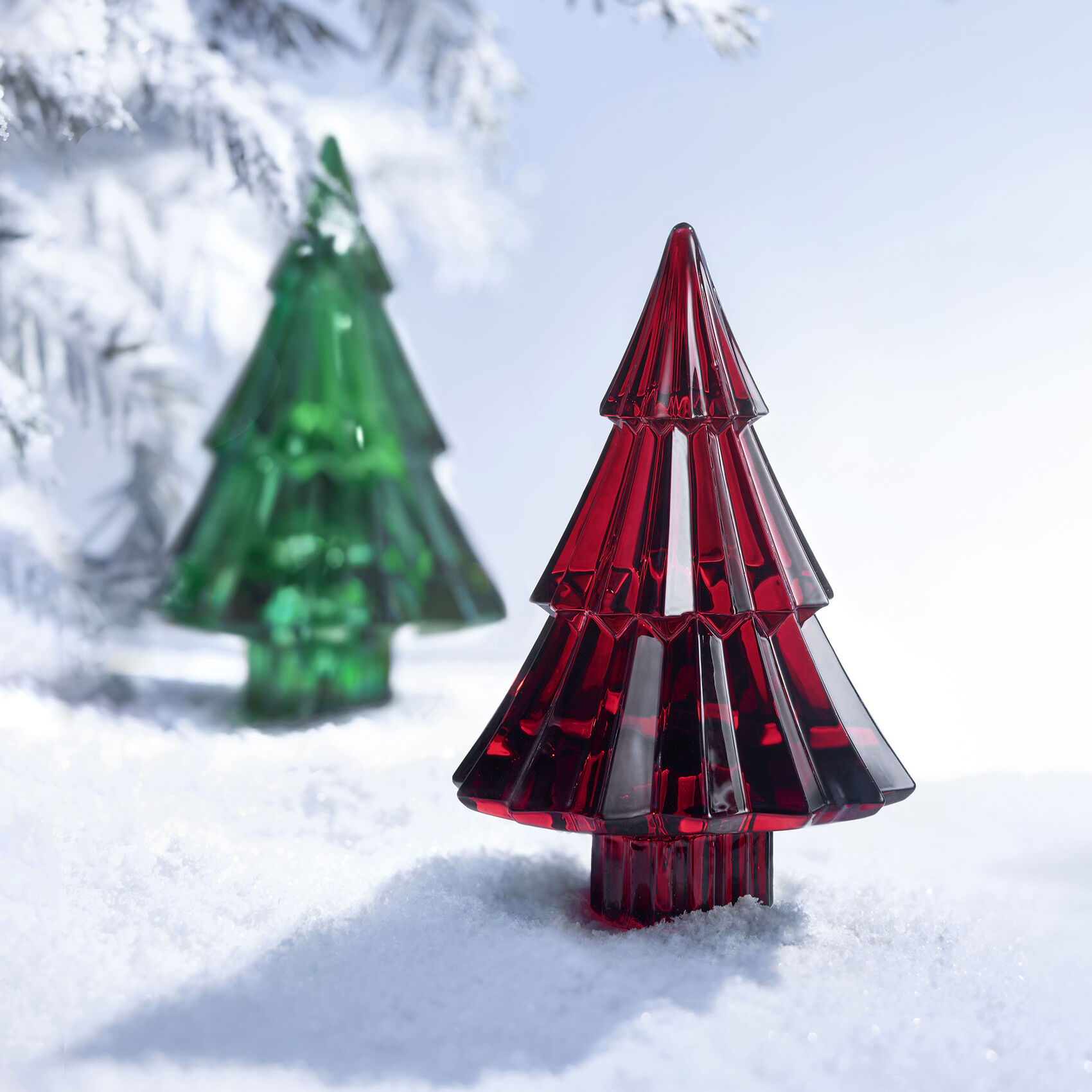 Inspired by the Sun Clock, an iconic creation of Baccarat, the fir trees in clear, red or green crystal create endless reflections to illuminate the holiday season.