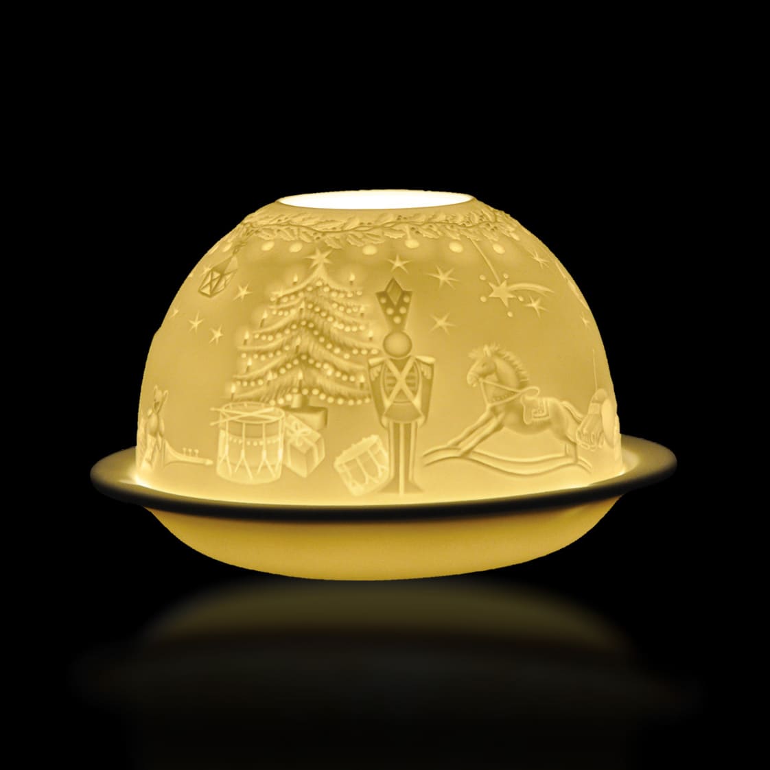 Votivelight Angels from Litophanes collection. The Lithophane VotivelightTM is a traditional engraving technique on a fine bisque non-glazed porcelain that was invented in Limoges in 1828. Bernardaud still use it to craft beautiful votives that come in a wide variety of decor. The glow of the candle shines through the raised and carved surface of the votive, contrasting light against shadow and thus revealing its richly detailed design.