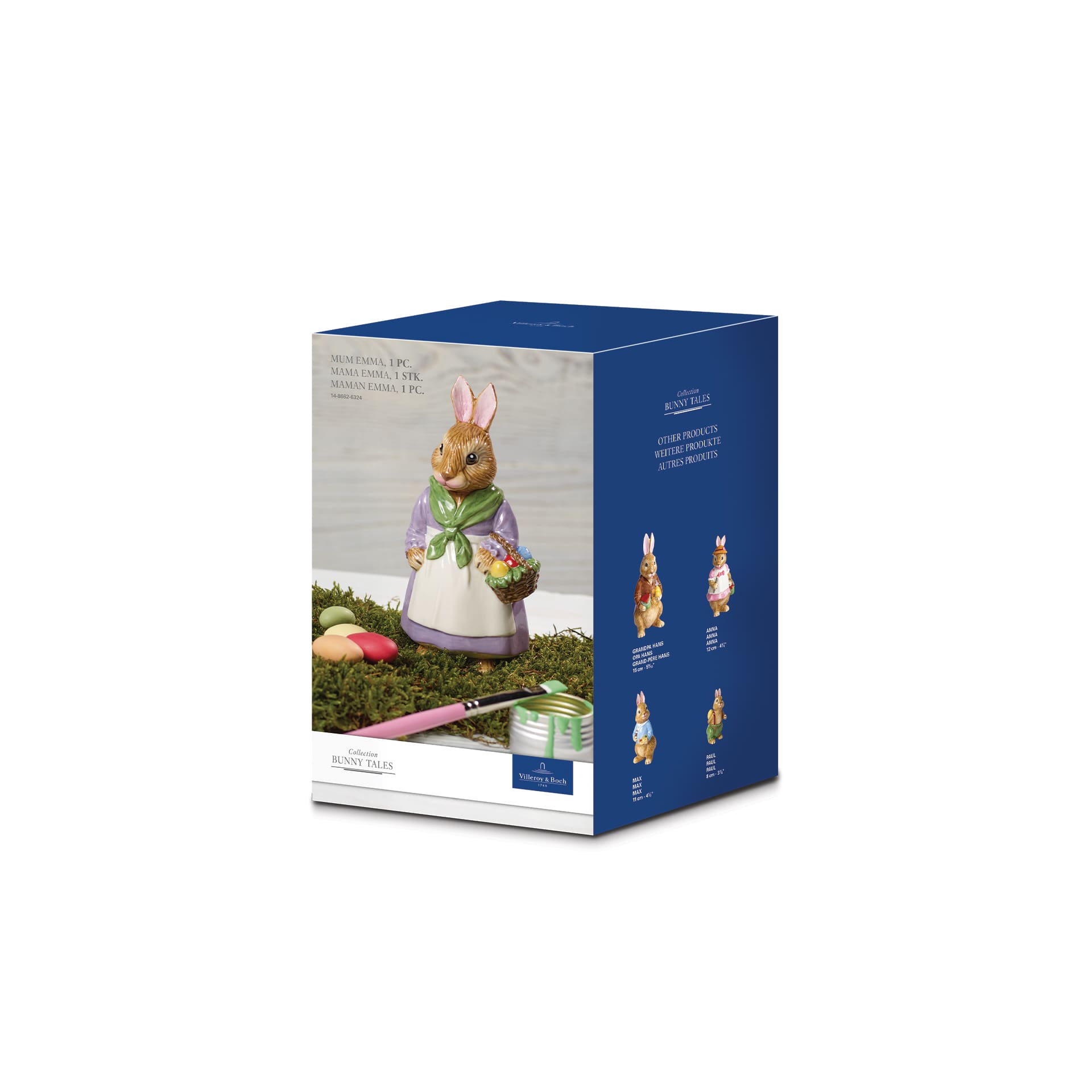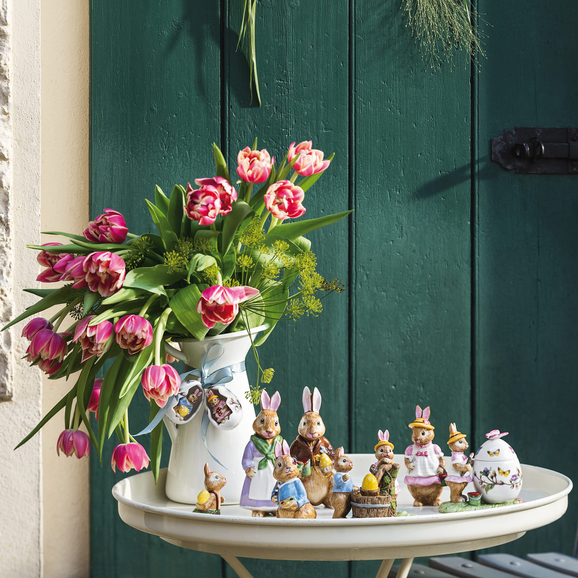 Celebrate Easter with hand-painted decoration. Let the Bunny Tales figurines tell the story of Bunny Grandpa Hans who teaches his grandchildren Anna, Max and baby Paul how to paint eggs. The hand-painted Mama Emma bunny figurine makes the perfect charming Easter decoration on your table or between spring flower arrangements. Experience the magic of Easter.