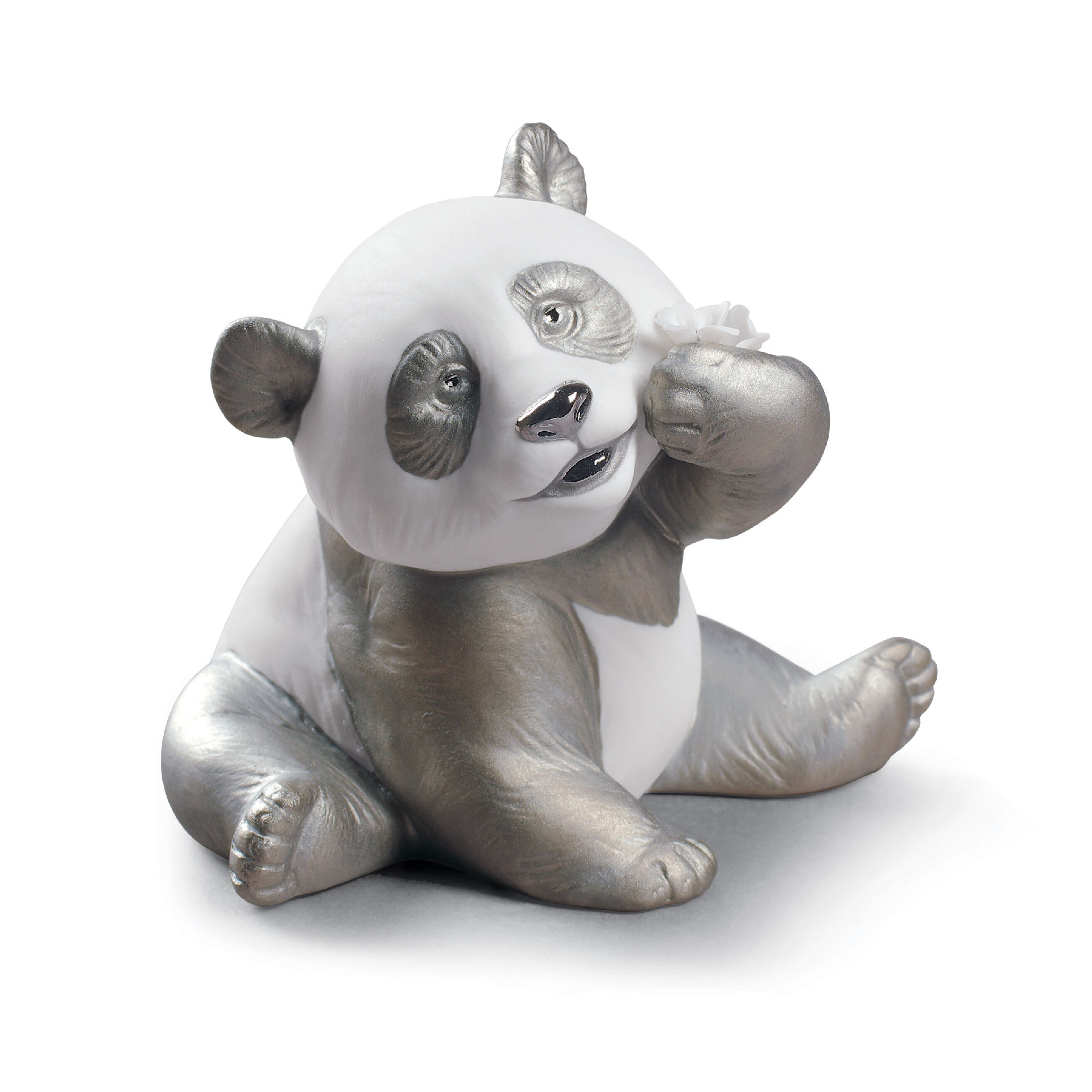 The Re-Deco concept gives a new life to the classic pieces of the Lladró catalogue through a new and striking decorative approach. This charming panda is given a much more contemporary style through the contrast between the matte white porcelain finish and the silver lustre that highlights parts of the piece.