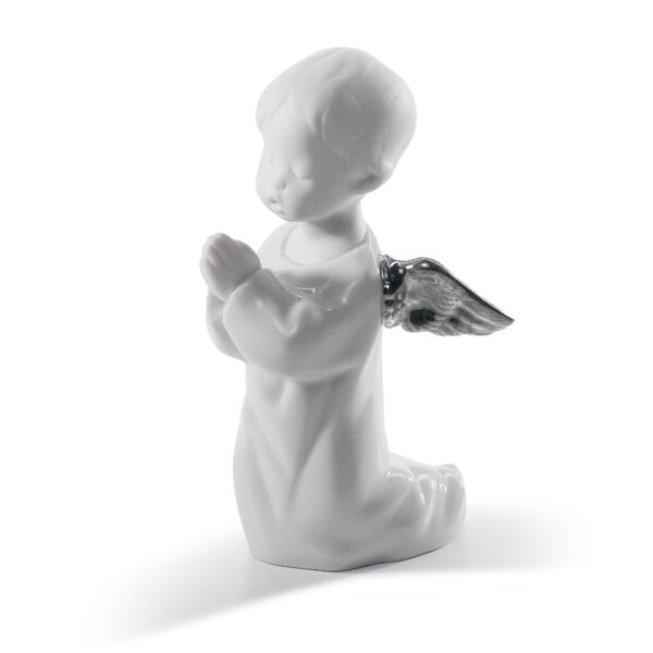 The Re-Deco concept gives a new life to the classic pieces of the Lladró catalogue through a new and striking decorative approach. This sweet little angel is given a much more contemporary style through the contrast between the matte white porcelain finish and the silver lustre that highlights parts of the piece.