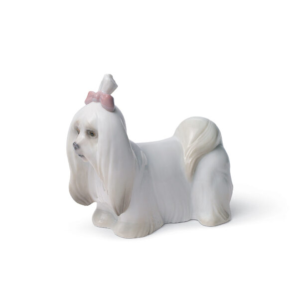 This realistic representation of the little Maltese, is part of the collection of canine breeds. Made of glossy porcelain, this piece shows in detail the characteristics of this breed, originally from the island of Malta.