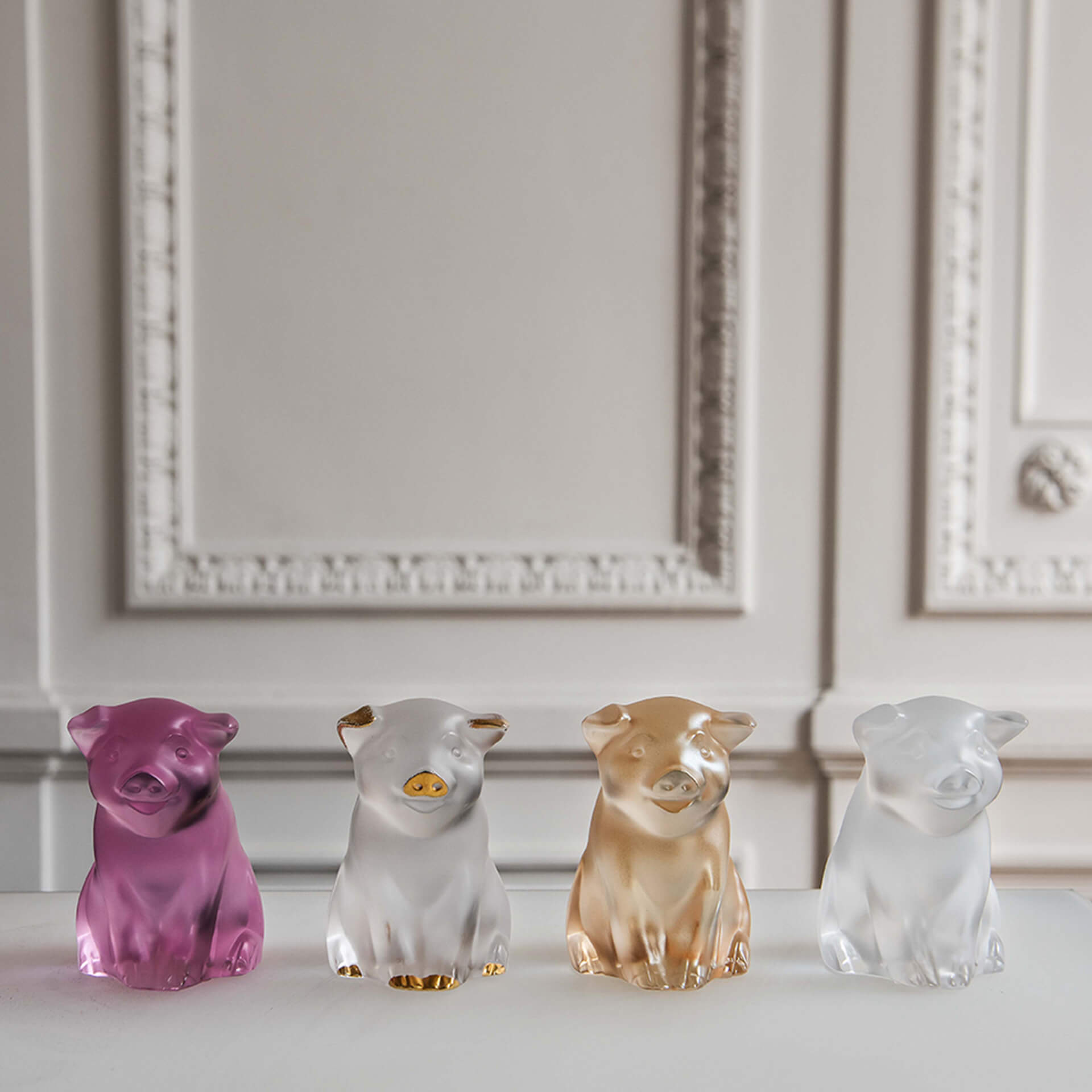To celebrate the year of Pig in Chinese astrology, Lalique designed this pig sculpture. In clear, gold enamelled or gold luster crystal, this animal, symbol of luck, wealth and loyalty, enriches the Lalique bestiary.