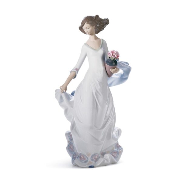 A lady dressed in a vaporous dress transports us to a world, somewhere between dreams and reality, in which we find ourselves whenever we let our imagination fly free. It is only then when we get close to our own personal utopias. Lladró has represented the world of fantasy in ethereal ladies like this one who incarnates the values of the feminine. It belongs to the Lladró Utopia Collection.