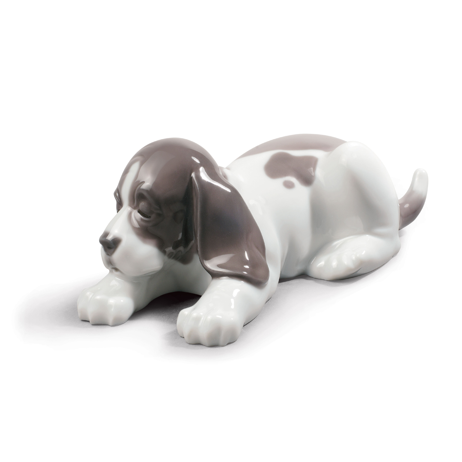 A loving, gentle and friendly pet, the perfect companion for a rainy afternoon by the fireside. A piece of glossy porcelain, decorated in pastel colours, ideal as a gift, collectible or decoration.