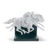 White feathers, a long stylised neck and an impressive poise have made swans frequent sources of inspiration for Lladrós artists. Back in 1992, the expressive possibilities offered by these splendid creatures allowed the creation of the Flight of Swans. The vibrant composition of the piece manages to convey all the power and grace of the moment in which a pair of swans take flight. The realism of this piece captures the slender silhouette of these birds that have inspired art and mythology since ancient times in an evocative image of beauty.