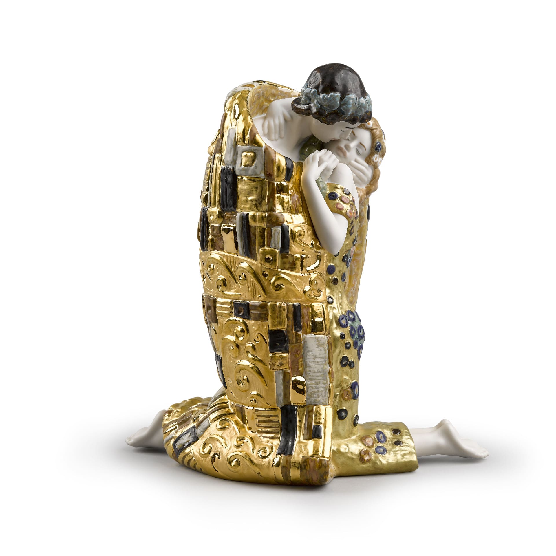 This piece, inspired by the most famous work of the Viennese painter, was made to mark the 150th anniversary of the birth of Gustav Klimt 1862-1918. Klimts painting, influenced by symbolism and art nouveau, stands out for its ornamental exuberance, so the challenge for Lladrós artists has been to remain faithful to the spirit of the original by means of a decoration in which the golden luster, the application of enamels and the different shades of gloss and Matte play a fundamental role.
