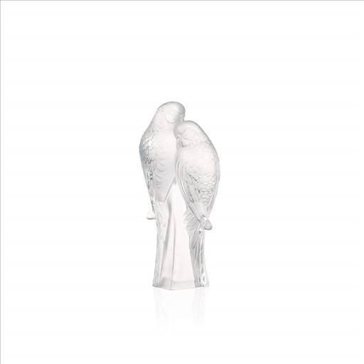 Highlighted by the purity and glare of clear crystal, this couple of Lovebirds with finely chiseled plumage symbolizes eternal love, a fusional relationship.