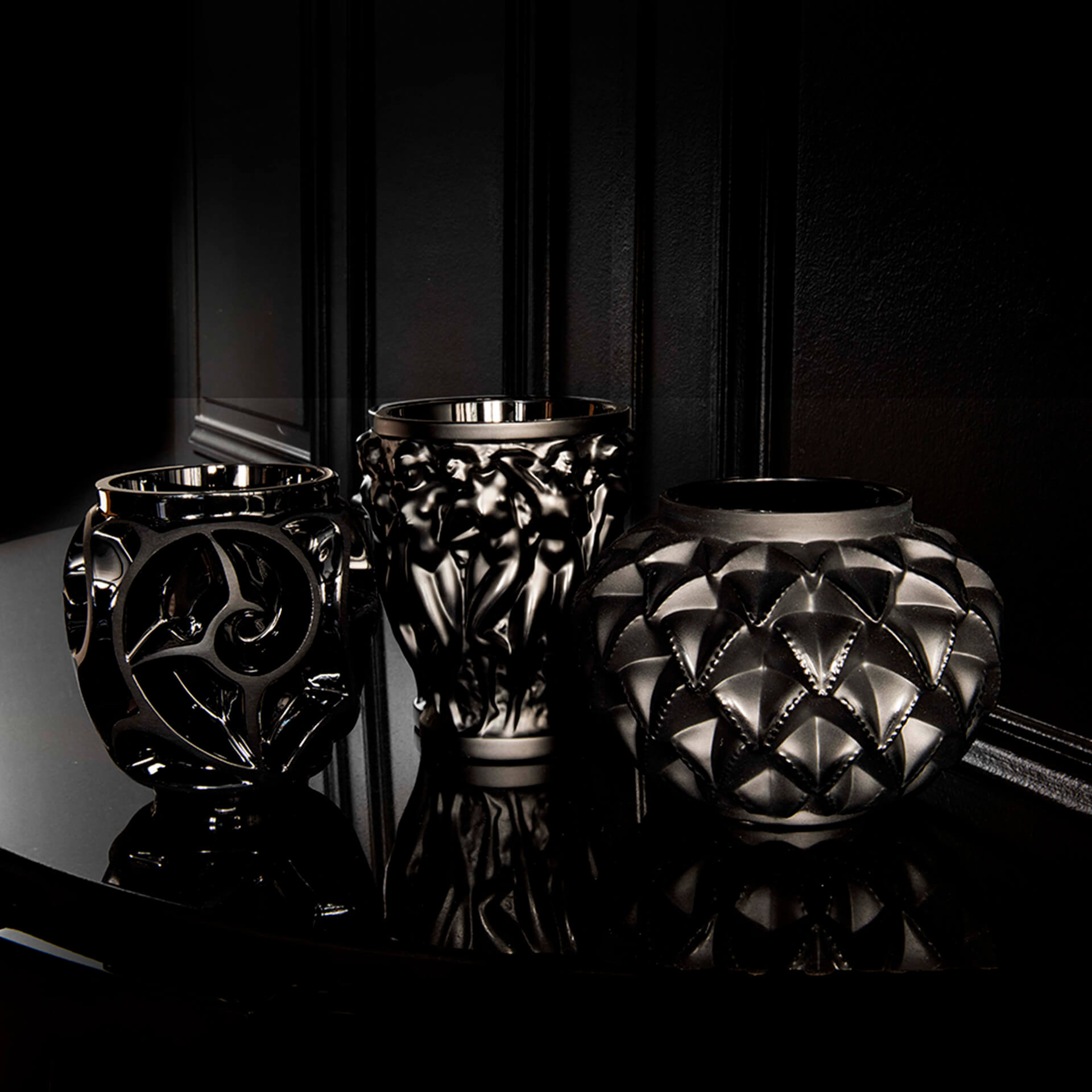 In 1927, René Lalique’s boundless imagination and creative genius lead to the creation of the Bacchantes vase. As a splendid insolent and a troubling sensuality, the young priestess of Bacchus offered their beauty and their curves. Today this majestic ode to femininity is reinterpreted in the small size vase, this round of sculptural nudes is an emblematic style of Lalique. The satined crystal recalls the smoothness of the skin texture while the play of light breathes life and movement to the piece, shaped by the hand of the artist.