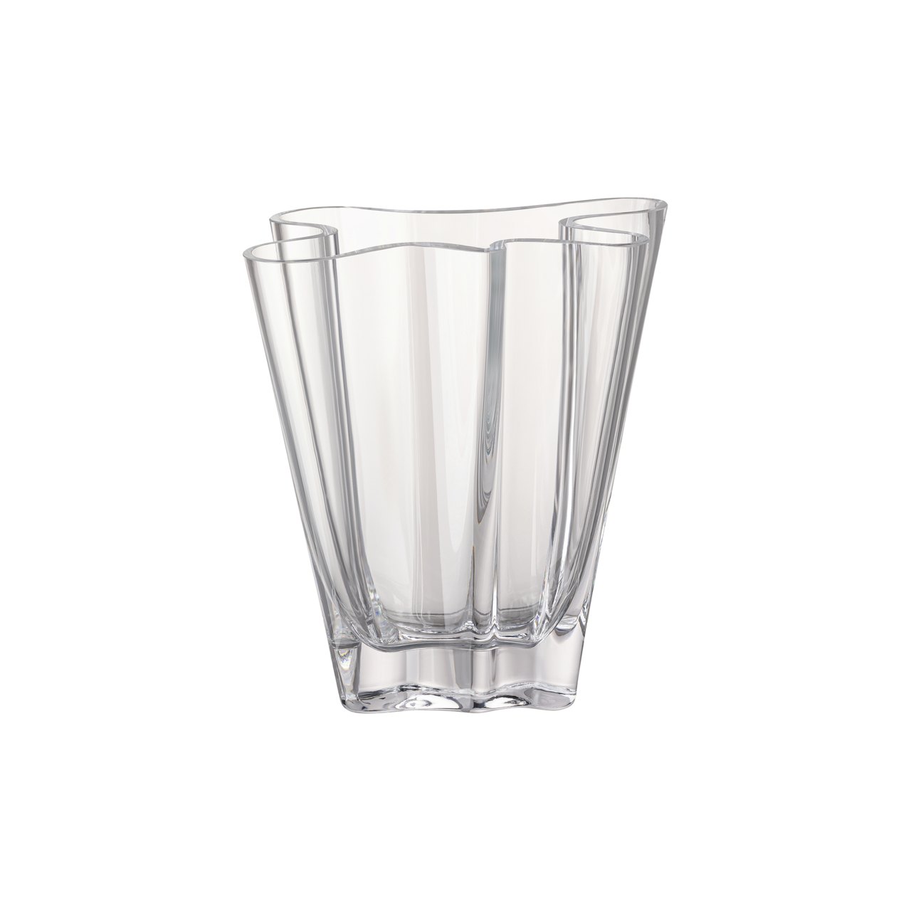 Opposites attract. Concretely at the bottom, abstractly at the top, “Flux” brings polarity to unity. The design darling made of fine porcelain is now also available as a beautifully shaped glass vase: very classic in clear, puristic in grey and in modern berry. The transparent material underlines the lightness and emphasises the flowing form of the vase, in which flower arrangements of all kinds find their stylish place.