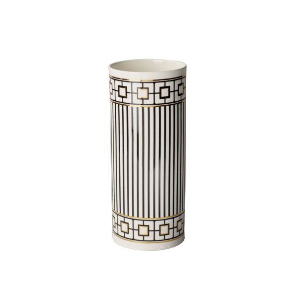 Whether a purist white or a geometric pattern in expressive black and gold – all pieces in the high-quality MetroChic tableware and gifts collection can be combined with each other in many different ways. The elegant and particularly resistant Premium Bone Porcelain transforms every table into a modern style statement of timeless elegance. Measuring 30 cm high, this vase can also hold long-stemmed flowers and will delight you for a long time with its brilliant pattern thanks to Inglaze Gold technology. Treat yourself to urban design or delight loved ones with this elegant gift idea.