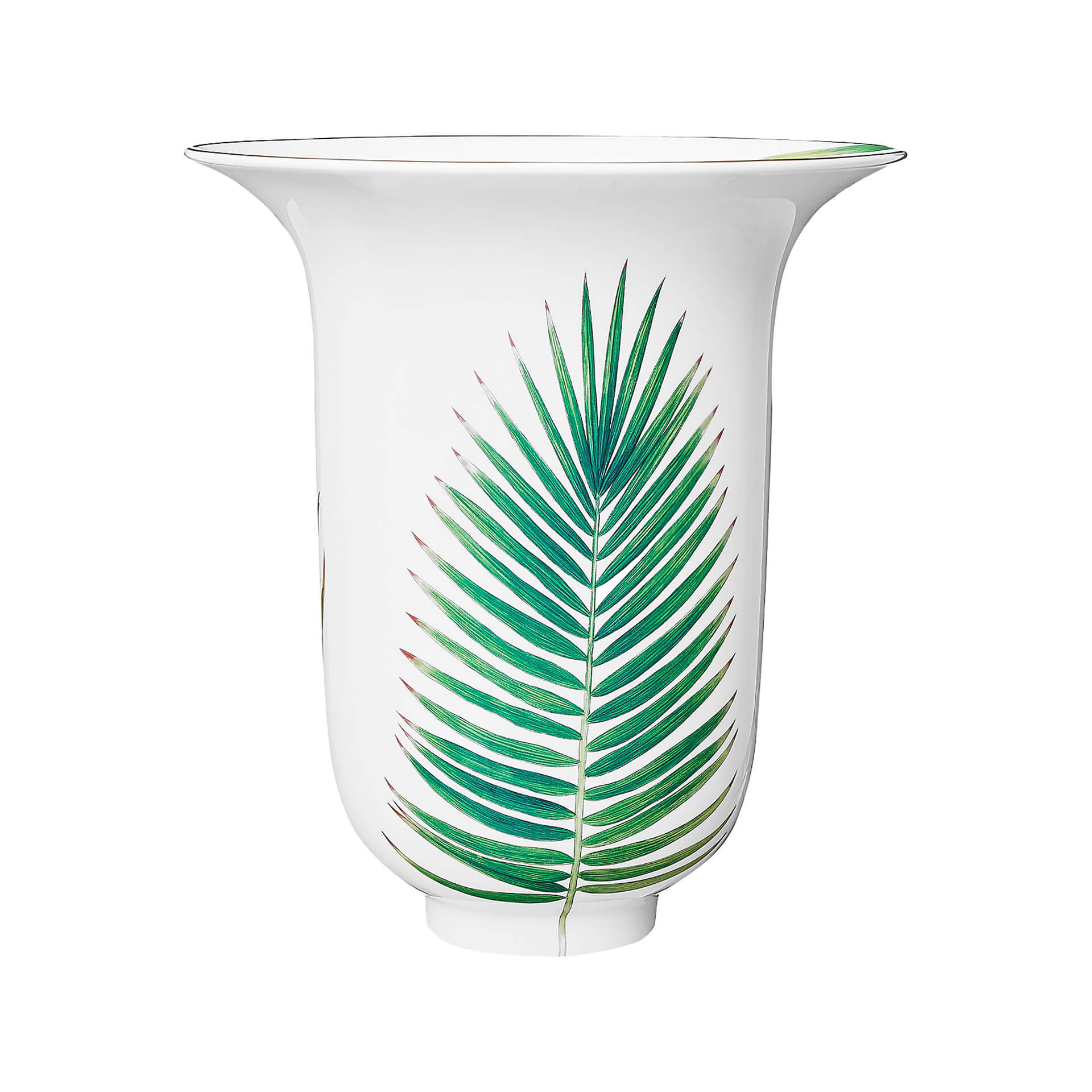 Vase from Passifolia collection. Nathalie Rolland-Huckel designed Passifolia, the tableware collection by Hermès, between two worlds, at the threshold between botanical tradition and art. Drawn from nature, her designs reveal delicate authenticity. From the side plates to the presentation platters, the coffee cups to the dinner plates, the thirty pieces that make up the Passifolia tableware collection are the fruit of an artisanal adventure, an exploration of know-how by the house of Hermès. New techniques and a series of skills were developed to faithfully reproduce the artist’s lush tropical palette and the delicacy of her line.